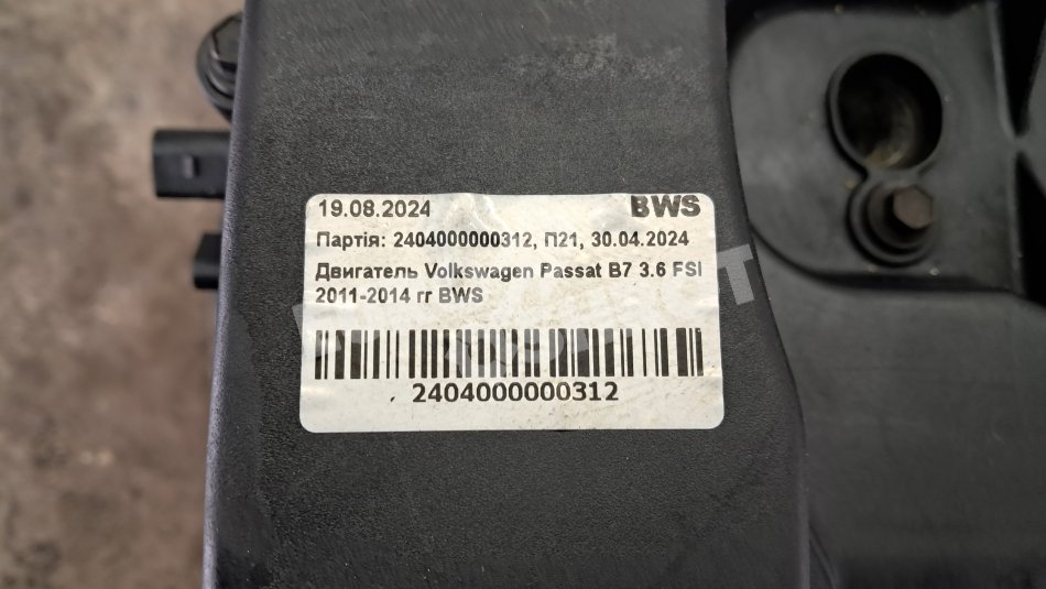 Данные двигателя устанавливаются на автомобиль Volkswagen Passat B7 объёмом 3.6 FSI 2011-2014 года выпуска. Маркировка производителя - BWS.Двигатель снятый с рабочего автомобиля в Швеции и является полностью исправен.Оригинальный пробег 128 тысяч километров. Мотор не разбирался и не подвергался ремонтным работам поэтому сохранена его целостность. Мы предоставляем гарантию на проверку – 30 календарных дней с момента заказа (заказ – это получение продавцом задатка).Отправка двигателя возможна в любой населённый пункт Украины. Более подробную информацию о цене и доставке вы можете узнать у наших менеджеров.Также возможна опция доставки мотора со склада в Швеции. Заказ только по предоплате.Предоплата – 30% от стоимости мотора. Доставка в районе 2-3 недель. Двигатель может быть продан со всем навесным оборудованием так и голый.